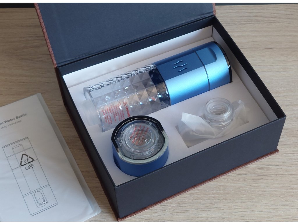This premium hydrogen generator, H2Power, transforms ordinary water into a highly effective antioxidant elixir – with an exceptionally high concentration of up to 4500 ppb of molecular hydrogen and a redox potential (ORP) of up to -500 mV. The device features a high-quality PEM membrane (DuPont N117), which ensures pure hydrogen production – without any unwanted byproducts such as ozone or chlorine. The generator is equipped with a practical adapter for PET bottles and has an LCD display that clearly shows the remaining program time and battery status. The powerful battery (2200 mAh) enables approximately 20 to 30 cycles per charge.